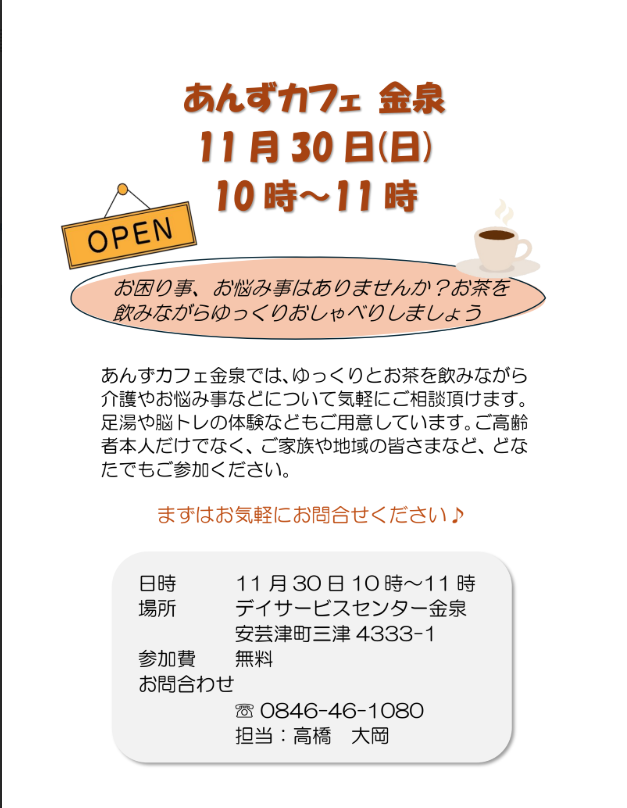 <11月30日 午前10時より デイサービスセンター金泉にて>