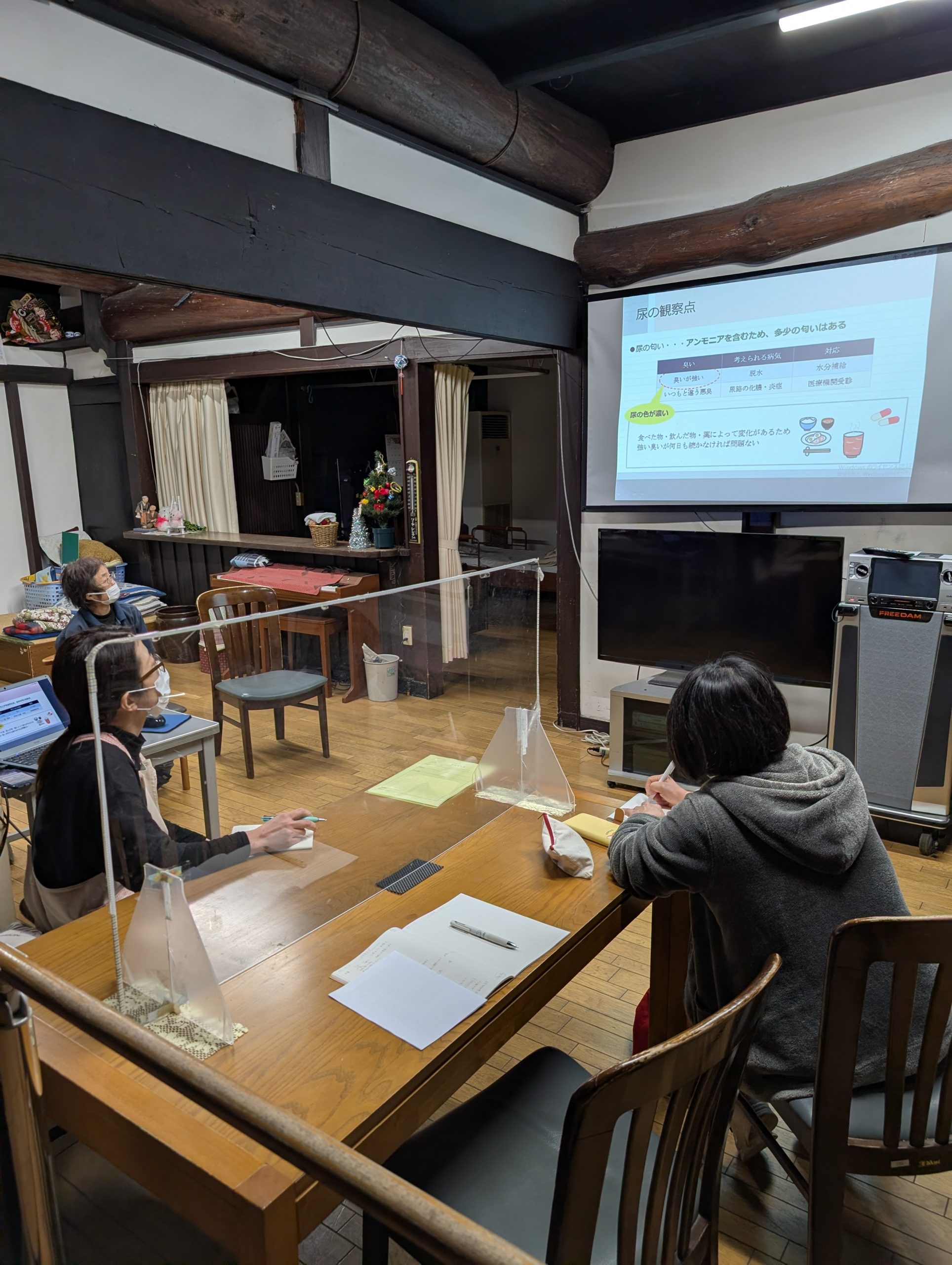 毎月、グループホームとデイサービスの職員が合同で介護技術に関する研修を行っています。