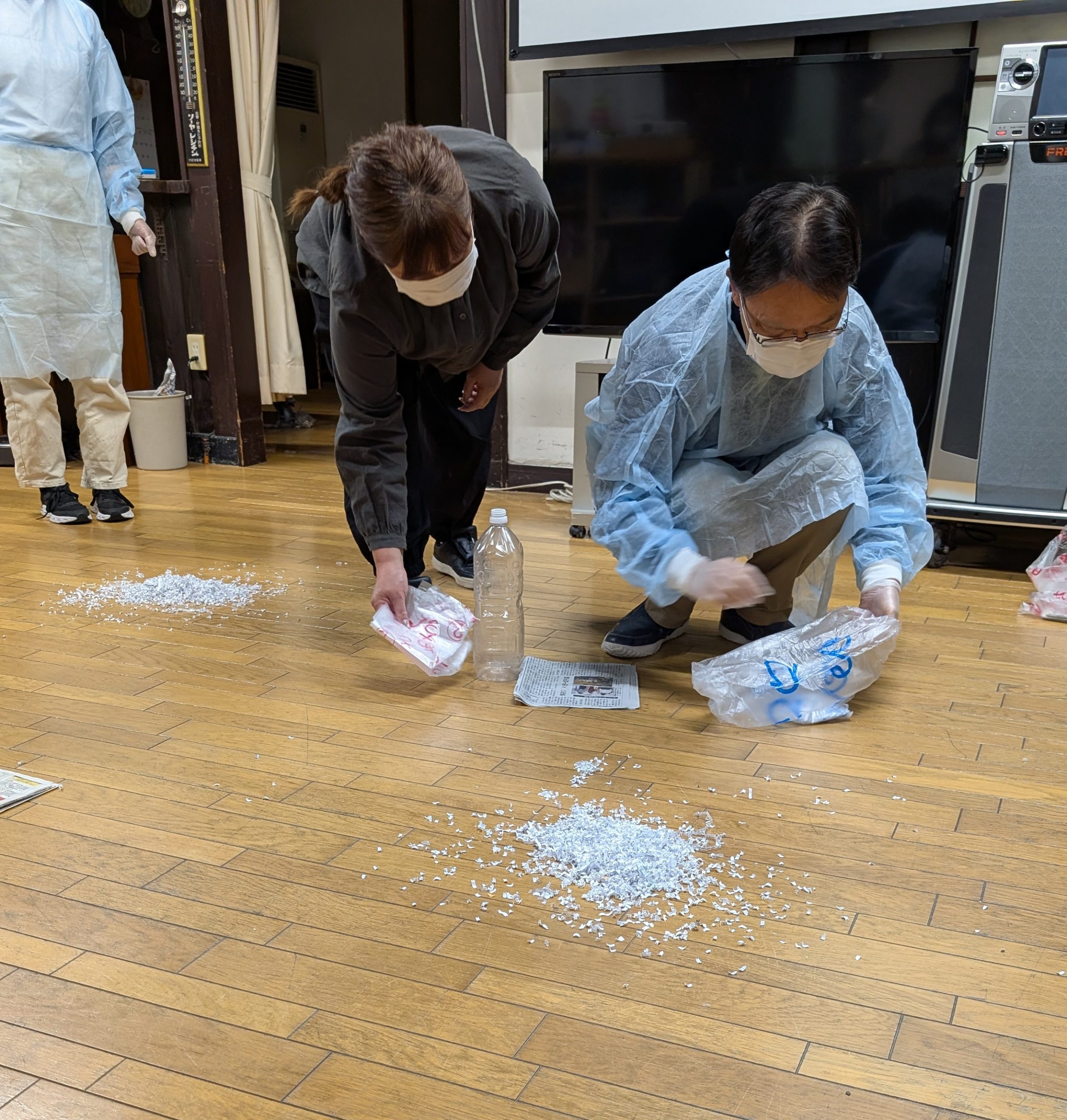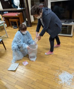 高齢者施設における感染制御の基本や標準予防策(スタンダードプリコーション)について復習し、嘔吐物処理の演習を行いました。